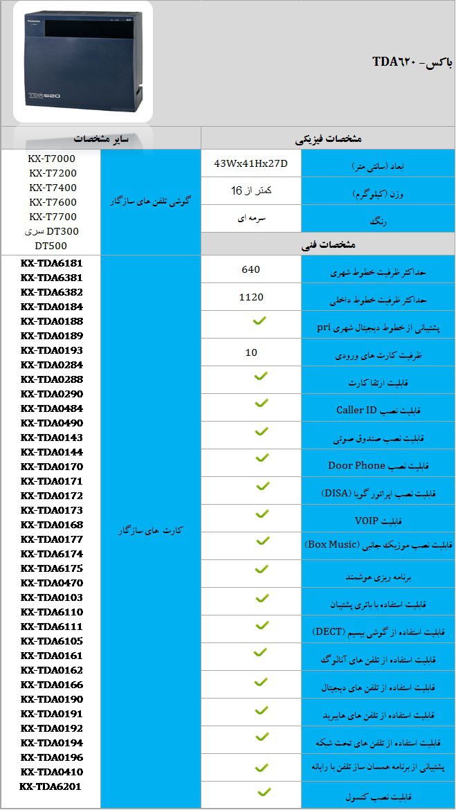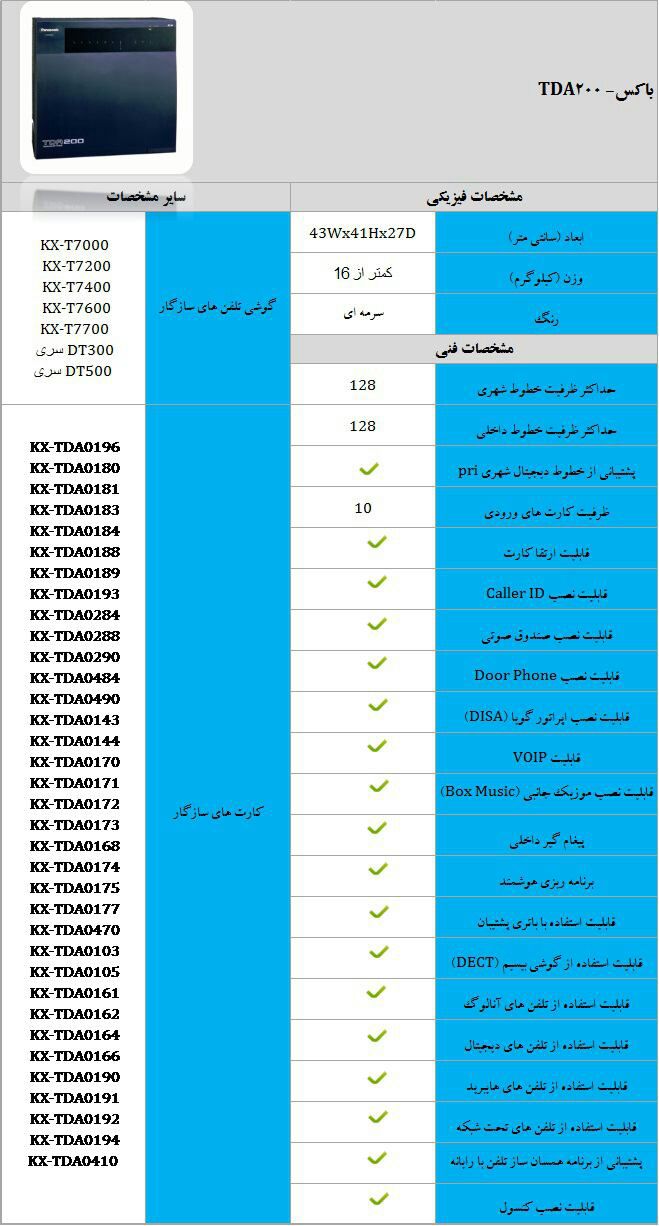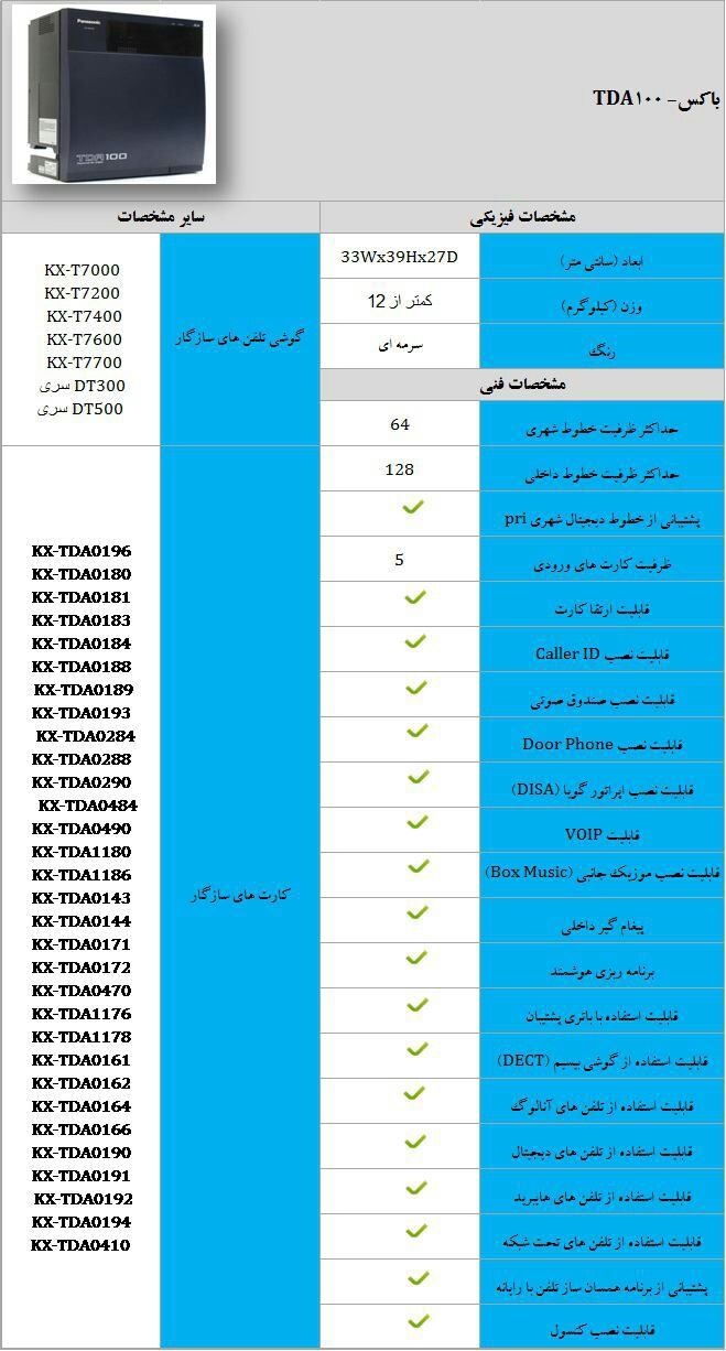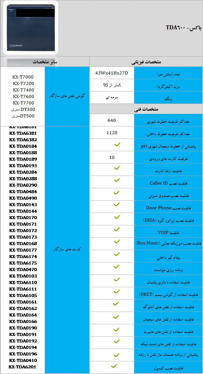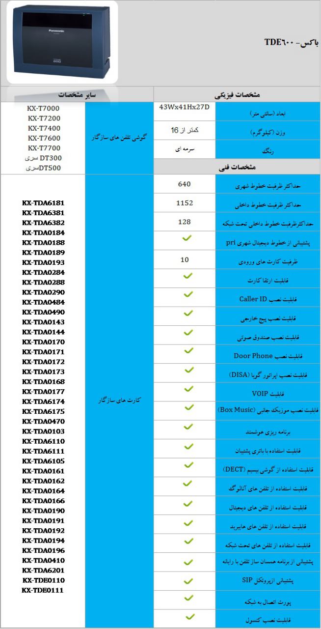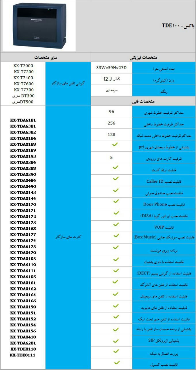 • فروش كارتها و لوازم جانبي مراكز تلفن سانترال پاناسونيك